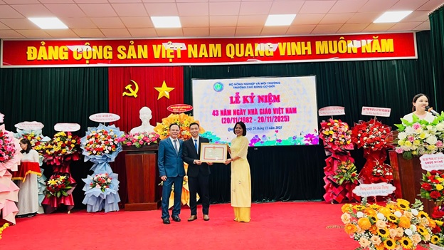 Dịp này, nhà trường cũng đã tổng kết và trao thưởng cho những tập thể, cá nhân có thành tích xuất sắc trong năm 2025 về thực hiện Đề tài và nghiên cứu khoa học; Sáng kiến kinh nghiệm và thiết bị tự làm; Công tác tuyển sinh hệ chính quy khoá 49; Phong trào thi đua yêu nước 2025 của Bộ Nông nghiệp và Môi trường, đồng thời trao học bổng khuyến học cho HS-SV khóa 47, 48 nhằm động viên, khích lệ tinh thần để các em tiếp tục cố gắng trong học tập và rèn luyện.