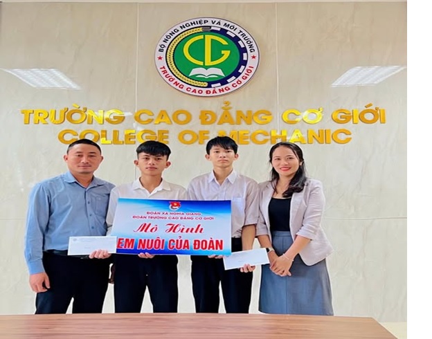 Ngoài ra, mô hình “Em nuôi của Đoàn” cũng được Đoàn trường Cơ giới ra mắt trong thời gian này với việc hỗ trợ số tiền 900.000 đồng cho hai em học sinh có hoàn cảnh khó khăn, vươn lên trong học tập. Đó là em Đinh Văn Khoá - Lớp 49G1 nghề Gò hàn và Nguyễn Hoàng Phúc - Lớp 49E2, nghề Điện Công nghiệp. Điều này đã khích lệ tinh thần to lớn, tạo điều kiện để các em yên tâm học tập, nuôi dưỡng ước mơ cho chặng đường lập thân, lập nghiệp sau này. Qua đây còn cho thấy trách nhiệm và sự chung tay của tuổi trẻ Trường Cao đẳng Cơ giới với cộng đồng.