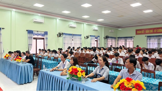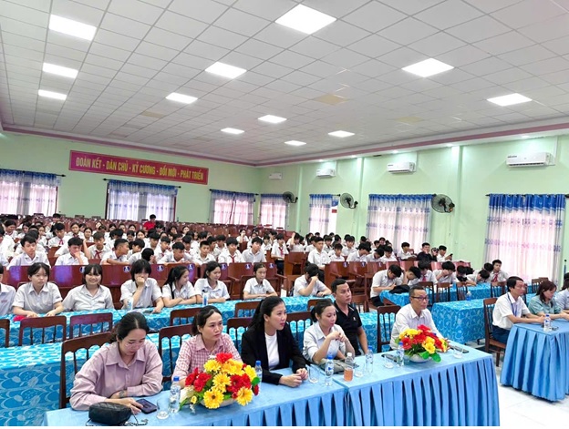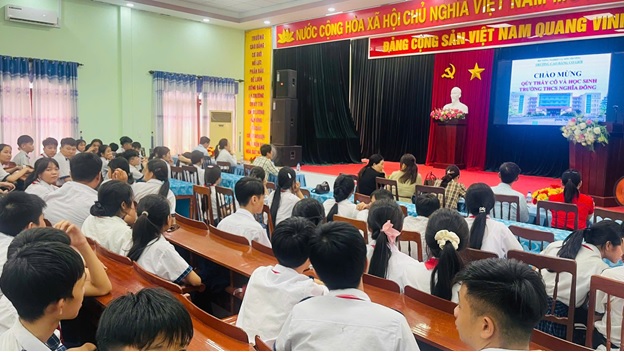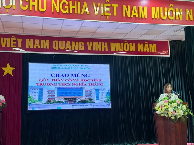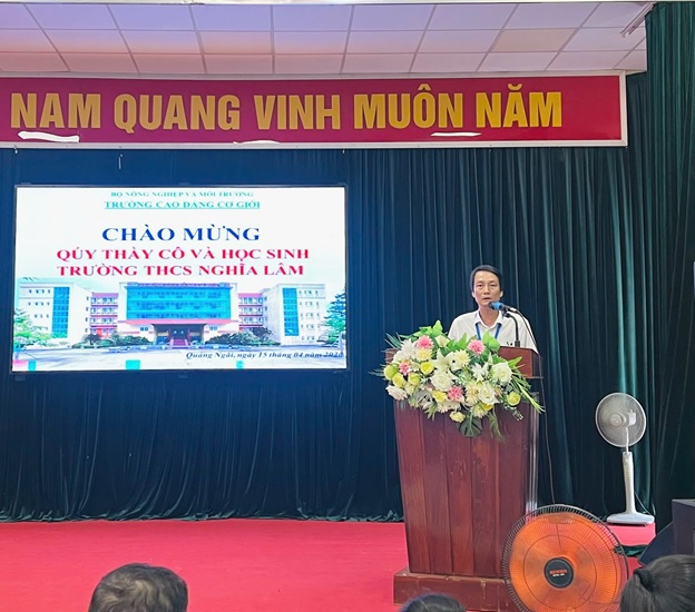 Tại buổi tham quan hướng nghiệp ngày 16/4/2026, các em học sinh cùng quý thầy cô Trường Trung học cơ sở Nghĩa Thắng được xem video giới thiệu đôi nét về lịch sử 50 năm hình thành, phát triển của Trường Cao đẳng Cơ giới- ngôi trường đào tạo nghề có uy tín và nổi bật của khu vực miền Trung- Tây Nguyên; được giới thiệu về các ngành nghề đào tạo hiện nay tại trường, được tư vấn để chọn lựa và định hướng nghề nghiệp sau khi kết thúc bậc THCS.