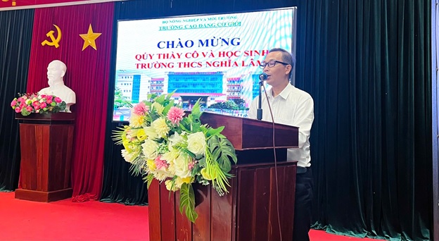 Ảnh: Đại diện lãnh đạo Trường THCS Nghĩa Lâm và THCS Nghĩa Thắng bày tỏ sự cảm ơn trước sự đón tiếp chu đáo của Nhà trường, đồng thời đánh giá cao ý nghĩa thiết thực của chương trình trong việc hỗ trợ học sinh tiếp cận môi trường học tập nghề nghiệp.