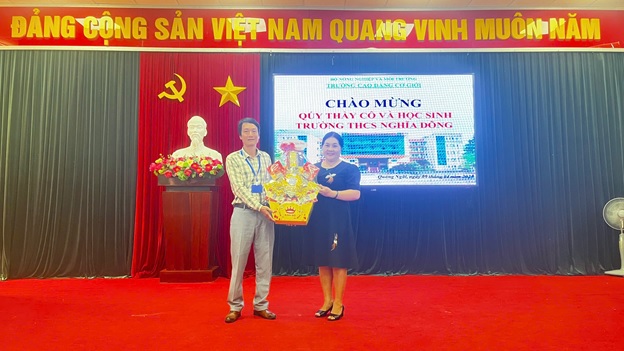 Ảnh: Trường Trung học cơ sở Nghĩa Dõng tại buổi tư vấn tuyển sinh, tham quan hướng nghiệp tại Trường Cao đẳng Cơ giới