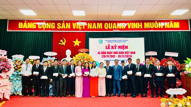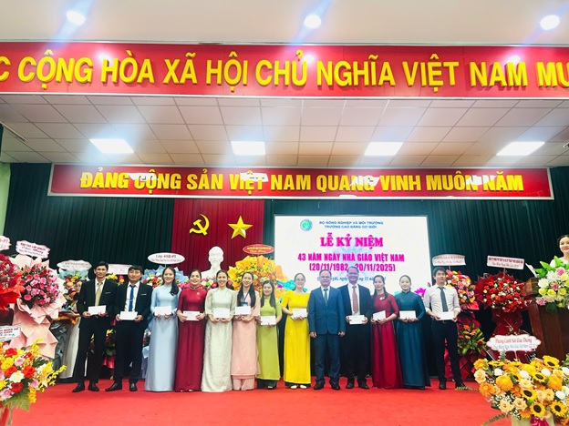 Dịp này, nhà trường cũng đã tổng kết và trao thưởng cho những tập thể, cá nhân có thành tích xuất sắc trong năm 2025 về thực hiện Đề tài và nghiên cứu khoa học; Sáng kiến kinh nghiệm và thiết bị tự làm; Công tác tuyển sinh hệ chính quy khoá 49; Phong trào thi đua yêu nước 2025 của Bộ Nông nghiệp và Môi trường, đồng thời trao học bổng khuyến học cho HS-SV khóa 47, 48 nhằm động viên, khích lệ tinh thần để các em tiếp tục cố gắng trong học tập và rèn luyện.