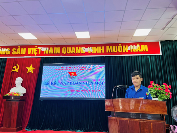 Trước cờ Tổ quốc, cờ Đoàn, trước chân dung của Bác Hồ vĩ đại, em Nguyễn Như Khoa - Chi đoàn lớp Công nghệ ô tô 46B2 đại diện cho 200 đoàn viên mới, đọc lời tuyên thệ “Luôn phấn đấu vì lý tưởng của Đoàn Thanh niên cộng sản Hồ Chí Minh, Đảng cộng sản Việt Nam và Chủ tịch Hồ Chí Minh; nghiêm chỉnh thực hiện Điều lệ Đoàn, tích cực rèn luyện để xứng đáng với danh hiệu Đoàn viên Thanh niên Cộng Sản Hồ Chí Minh.