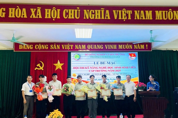 Sáng ngày 11/6/2025, Trường Cao đẳng Cơ giới đã tổ chức Lễ bế mạc Hội thi Kĩ năng nghề học sinh – sinh viên (HS-SV) năm học 2024 – 2025 sau 2 ngày tranh tài sôi nổi, nghiêm túc, an toàn và đúng qui định. Buổi lễ đánh dấu thành công tốt đẹp của một sân chơi rèn kĩ năng nghề nghiệp bổ ích, thiết thực, góp phần nâng cao chất lượng đào tạo và khơi dậy niềm đam mê nghề nghiệp trong HS-SV toàn trường.