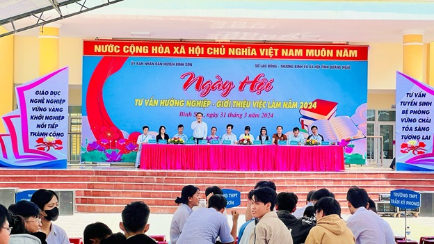 Ngày hội do Sở Lao động-TB&XH tỉnh Quảng Ngãi tổ chức luôn là sự kiện được đông đảo học sinh, phụ huynh, người lao động quan tâm, chờ đợi trước mỗi kì thi tốt nghiệp THCS, THPT và tuyển sinh đại học, cao đẳng.