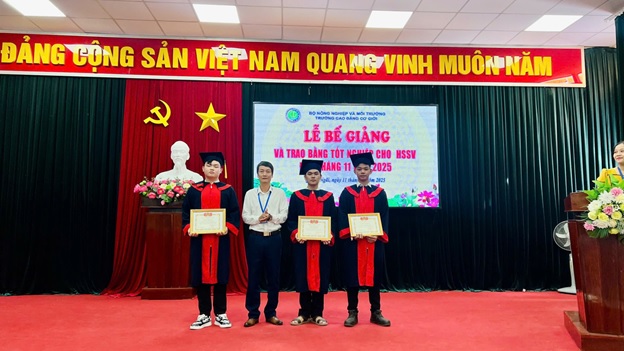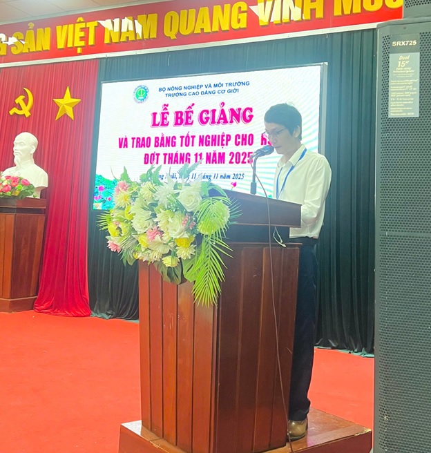 Sáng ngày 11/11/2025, Trường Cao đẳng Cơ giới đã tổ chức Lễ bế giảng và trao bằng tốt nghiệp cho học sinh – sinh viên các lớp khóa 47 trình độ Trung cấp và khóa 48 trình độ Cao đẳng liên thông. Tham dự buổi lễ có Thầy Lê An- Phó Hiệu trưởng nhà trường cùng Trưởng, Phó các Phòng, Khoa; các thầy cô giáo và 64 tân kĩ sư thực hành tốt nghiệp đợt này.