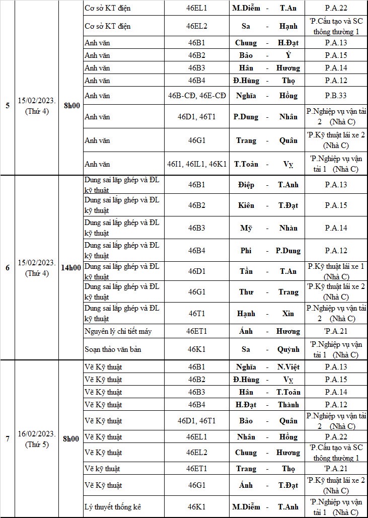 Lịch thi học kỳ 1 năm học năm học 2022-2023