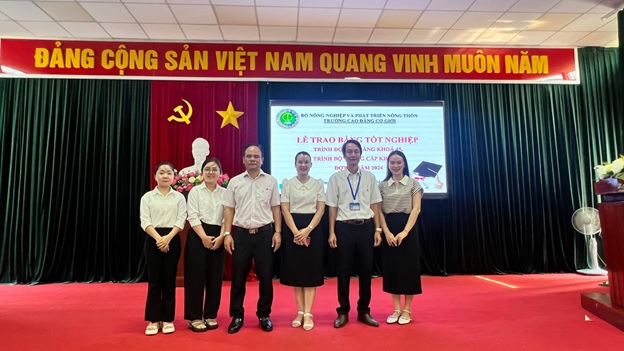 Tham dự buổi lễ có Thầy Nguyễn Kim Sơn -Bí thư Đảng ủy, Hiệu trưởng nhà trường; Thầy Lê An- Phó Hiệu trưởng cùng các thầy, cô giáo và gần 70 học sinh, sinh viên tốt nghiệp.